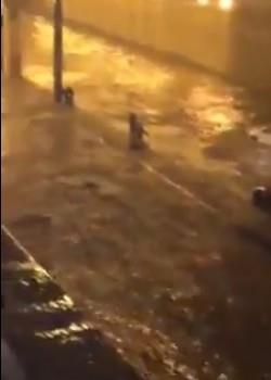 كبيرة من مياه الأمطار، كما يظهر أيضاً غرق عدد من السيارات داخل النفق إثر