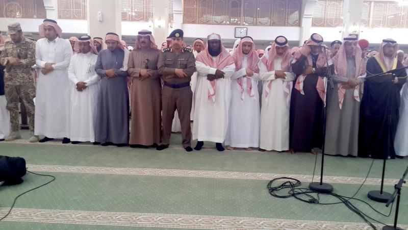 شيع مئات من جموع المصلين يتقدمهم محافظ بيشة محمد المتحمي ، والمدير العام لمديرية مكافحة