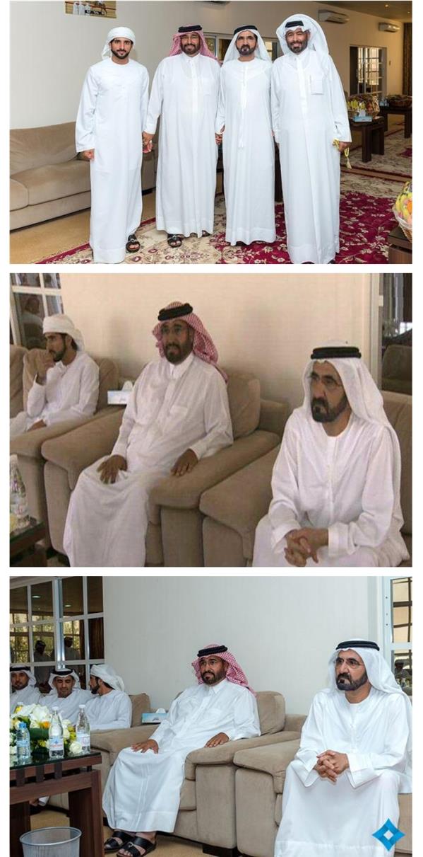 وأقام الهاجري مأدبة الغداء في عزبته بمنطقة المرموم في دبي، حيث يشارك هو وعدد من أبناء دولة قطر في المهرجان التراثي للهجن العربية الأصيلة 2014 الذي يقام على أرض ميدان السباقات في منطقة المرموم.