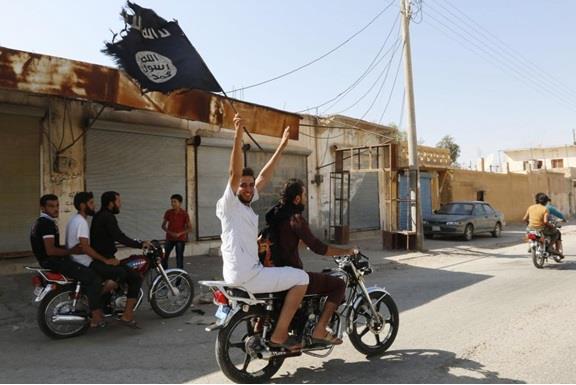 رفاقه في التنظيم، في شوارع محافظة الرقة الواقعة شمالي سوريا، يوم 30