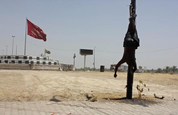 بـ"المقلوب" في مدينة "بعقوبة"، بعد أن شنقه مسلحون مجهولون، بسبب انتمائه