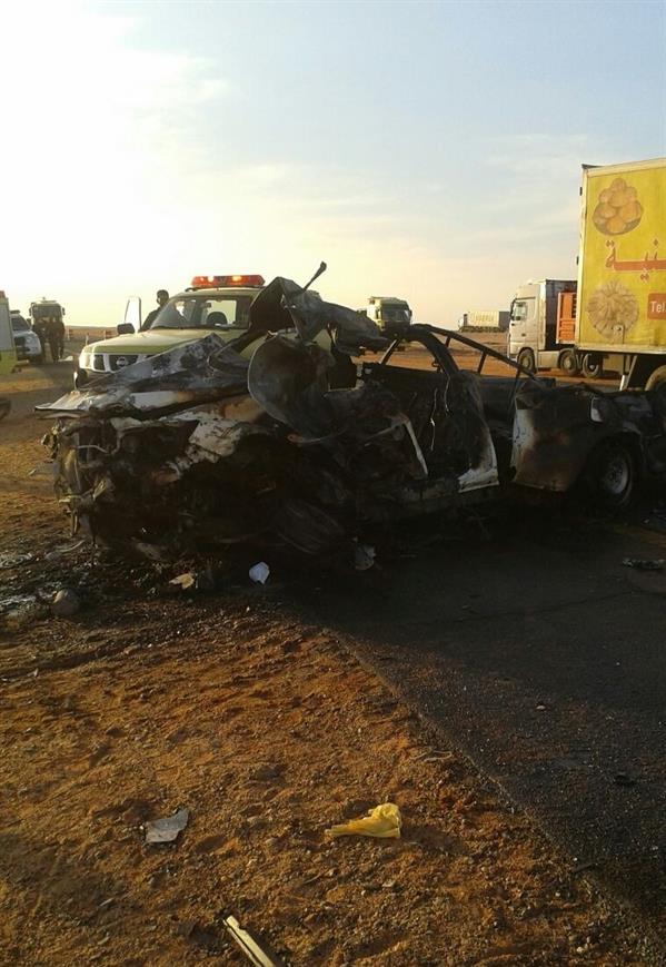 وبحسب تلك المصادر نتج عن الحادث "احتراق" سياره من نوع هايلكس ووفاة جميع ركابها من عائلة واحده