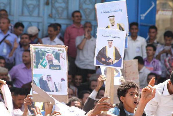 وظهر متظاهرون في عدد من المحافظات اليمنية، يرفعون لافتات شكر وصوراً لخادم الحرمين الشريفين الملك سلمان بن عبدالعزيز.