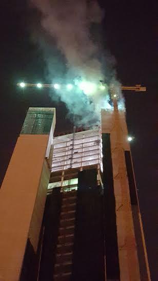 بالدفاع المدني بالعاصمة فجر اليوم الأربعاء حريقاً اندلع في أحد الأبراج قيد الإنشاء بطريق الملك فهد بالرياض (برج