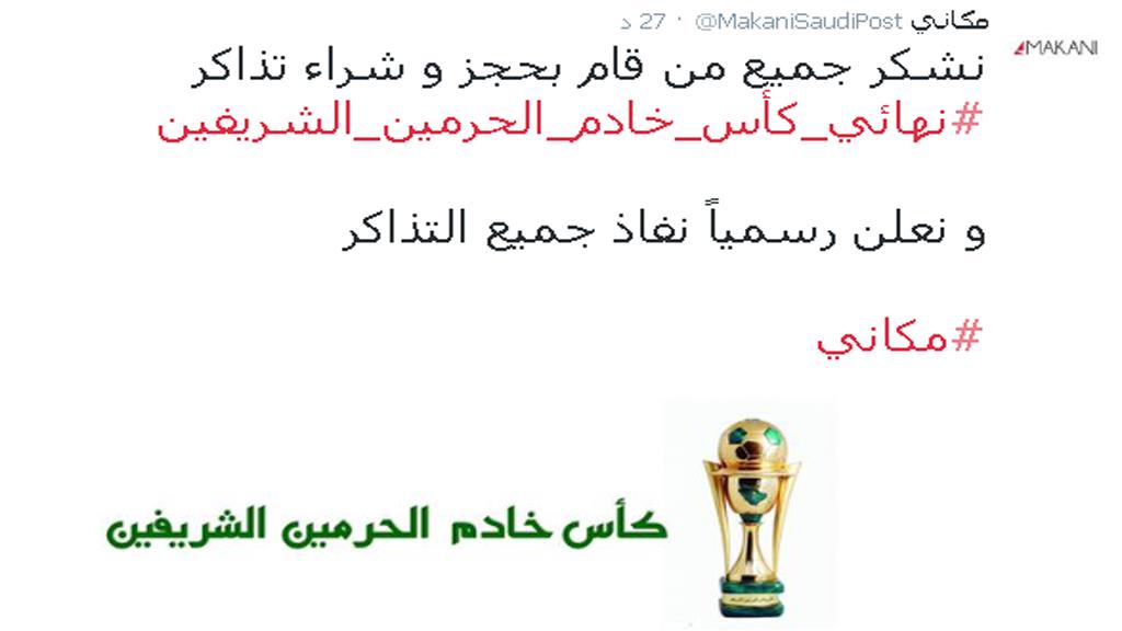 الموزع لتذاكر مباراة نهائي كأس خادم الحرمين الشريفين بين الهلال والنصر نفاد تذاكر